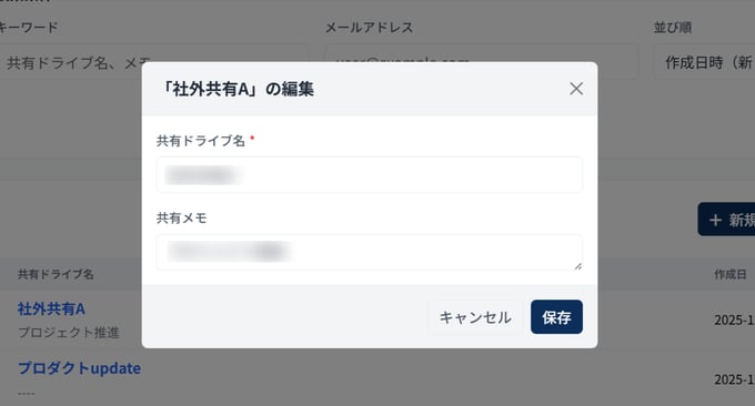 - 共有ドライブ名、共有メモ(任意)を入力し、[保存] します。