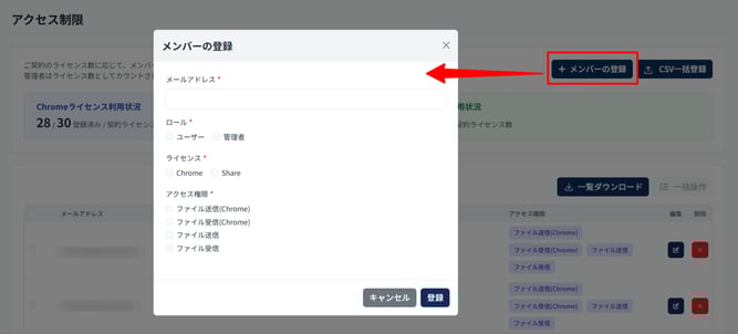 - [+ メンバーの登録] ボタンを押下します。