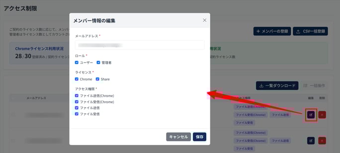 - 対象のメンバーの編集(鉛筆アイコン)を押下します。