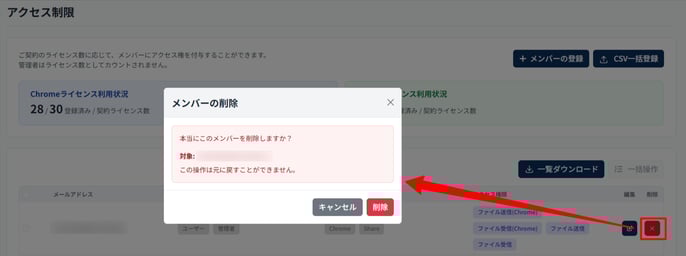 - 削除対象のメンバーを確認して[削除] します。